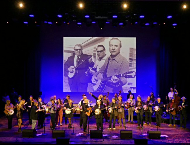 The Earl Scruggs' 100th Birthday Celebration took place at the Ryman Auditorium in Nashville, Tennessee on Saturday, January 06, 2024. The concert featured Jerry Douglas as Musical Director along with a long list of well-respected artists such as The Earls of Leicester, The Del McCoury Band, Gena Britt, Alison Brown, Sam Bush, Michael Cleveland, Stuart Duncan, Jimmie Fadden, Bela Fleck, Jeff Hanna, Sierra Hull, Bronwyn Keith-Hynes, Jim Mills, Justin Moses, Jerry Pentecost, Todd Phillips, Harry Stinson, Bryan Sutton, Tony Trischka, Abigail Washburn, Pete Wernick and more.