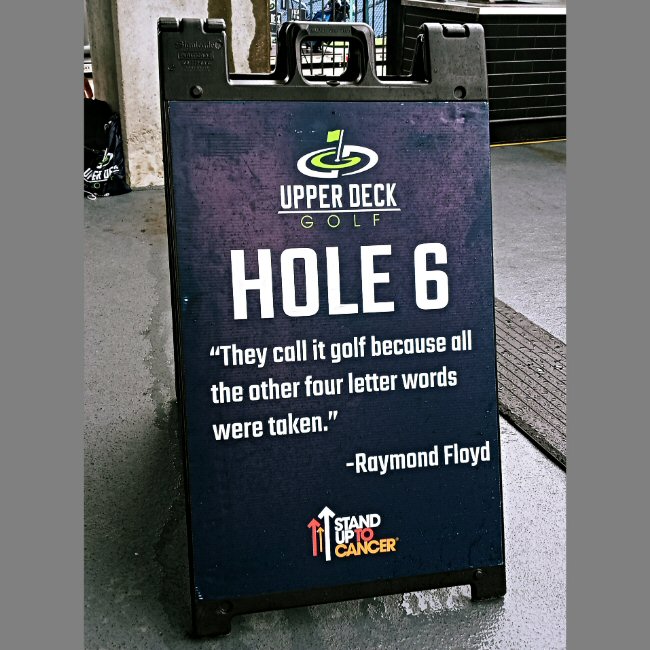 ![]() Despite the rain golfing at the stadium was fun with some humor mixed in for good measure. Related Links: For more information on UPPER DECK GOLF and the other organizations mentioned please visit the following links - Upper Deck Golf | Nissan Stadium | Stand Up To Cancer