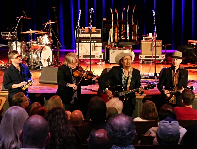 Alejandro's quartet performed a trio of songs off stage in the audience. Musician Alejandro Escovedo has a diverse background and body of work. In the 1970's, Escovedo started out in punk with The Nuns, moving to roots rock (True Believers) and later alt-country (Rank & File). With all those varied experiences, Alejandro launched a solo career that led to opportunities to work with Tony Visconti, John Cale, Bruce Springsteen and more. Escovedo's eclectic style continued to evolve with some albums reflecting his rock & roll interests countered by say La Cruzada (2021) - a Spanish speaking record exploring the immigrant experience. In 2021, Alejandro was inducted into the Austin City Limits Hall of Fame as he is closely associated with the artistic scene in Texas. But, he is also connected to San Francisco and New York as well. Escovedo comes from a family of musicians. All of these assorted elements are reflected in songs that have swagger along with soul bearing prose as reflected in Alejandro's set at the CMA Theater. On Friday, he was fronting a four-piece and they opened with a triple play of heavy rockers - "John Conquest", "Sacramento and Polk" and "Bury Me". "Sensitive Boys" was also a standout during their diverse show.