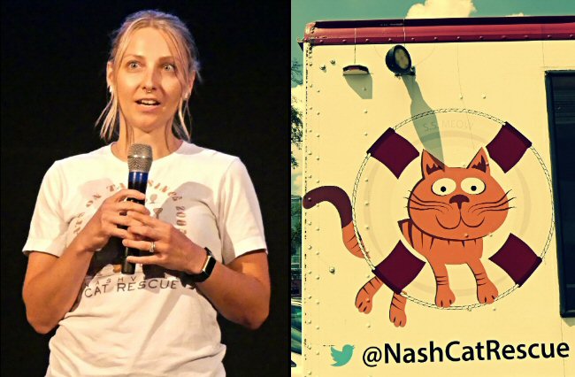 The Nashville Cat Rescue (NCR) and their recognizable Catmobile were parked outside to introduce folks to a number of felines ready to be re-homed. Their Director Eva McCallister spoke briefly about how this organization that started out small in 2005 is now a sizable group that rescues homeless cats and those in high-kill shelters. Operating without a brick-and-mortar facility and without a paid staff, NCR relies on the dedication of fosters and volunteers to rescue, house and prepare their animals for adoption.
