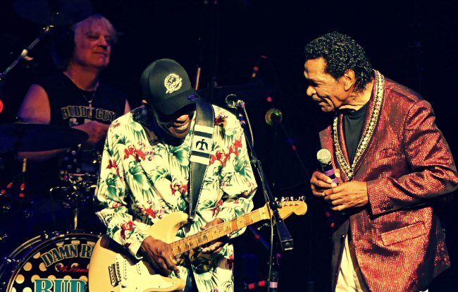 Damn Right - Buddy Guy made a triumphant return to Nashville. Buddy Guy started off playing in bands in Baton Rouge, Louisiana before relocating to Illinois in 1957 to become one of the greats associated with the Chicago blues scene. He has inspired an impressive list of guitarists such as Jimi Hendrix, Eric Clapton, Jimmy Page, Keith Richards, Jeff Beck and mentored others including Quinn Sullivan. As Mr. Guy walked out on stage he was welcomed with a standing ovation. Buddy's band included Tom Hambridge (drums), Ric Hall (guitar), keyboardist Dan Souvigny and bassist Orlando Wright. They opened with a rousing "Damn Right I Got the Blues". Next was a vibrant version of "I'm Your Hoochie Coochie Man" (Willie Dixon) that Buddy added some guitar tricks to and then step to the side to let Ric strut his stuff. "I Just Want To Make Love to You" was another well-played racy number as was their fervent take of "Fever" (Eddie Cooley) that gave Hall another spotlight.