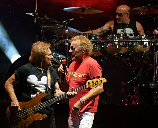 ![]() Michael Anthony and Sammy Hagar were reunited and it felt so good. Hagar and company were in top form seemingly having a great time mid-week in Music City. Sammy gathered many items (cowboy boot, several hats and a [WTF?] scarf) that were thrown on stage and he autographed them all before returning them to the patrons. The most poignant moment came when the Red Rocker held up a large sign during the instrumental break in "Right Now" that said "Right Now, Eddie Van Halen says Thank You" that brought the frontman to the verge of tears. More heartstrings were tugged when he sent out "Eagles Fly" to Jason Bonham who was absent in order to be with his family back home in London. Next, he thanked drummer extraordinaire Kenny Aronoff who stepped in on very little notice to keep the tour going through its conclusion by barely missing a beat. Through Kenny's sturdy handiwork we all got a lesson in what it means to truly be a worldclass musician ready to go when preparation and opportunity converge.
