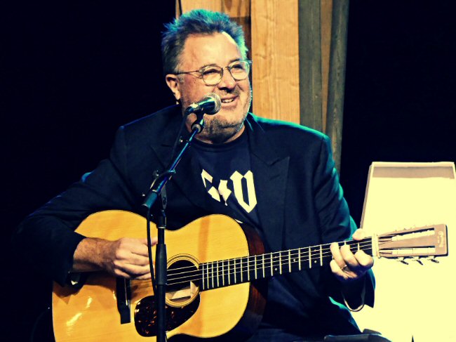 ![]() Alive & The Bluebird volunteers; a look at the farm; and, some of the silent auction items in Franklin. In fact, the boys in the round were really having trouble containing themselves both cracking up several times to themselves before they could even get the jokes out of their mouths. Getting the biggest laugh was Vince recalling the first time he had met Keith Richards and watching fellow Nashville mainstay Ricky Skaggs giving a Gospel witness to the notorious Glimmer Twin. Keef listened to the lead voice of the Kentucky Thunder before replying that if he ever does meet his maker that he's probably due for a "big spanking". In honor of another significant occasion in his life, Gill played "Whenever You Come Around" which he wrote for Amy when he first met her. A bit later he mentioned being inspired and later meeting Chet Atkins so Vince played a track dedicated to one of his heroes.