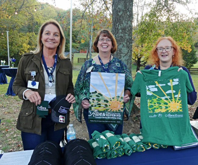 Amy Grant, Vince Gill and Don Schlitz presented a special edition of Alive & The Bluebird Songwriter Series on October 24th. These all-stars have been longtime supporters of Alive Hospice and special guest Stephanie Chapman added her voice to the cause in 2024. The concert with a VIP component was held at the Performance Pavilion located on Amy and Vince's farm in Franklin, Tennessee. The stage set-up was on top of a hill giving fans a fantastic view of Middle Tennessee before the sunset.
