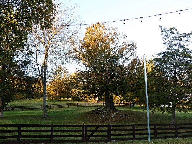 ![]() Don Schlitz holds court at the Nashville-style round in Franklin. Prior to the concert food catered by Kristen Winston was paired with drinks supplied by Lipman. Our favorites were the pecan crusted chicken served with apricot ginger sauce and for desert in honor of Amy, Grandma Grant's Fudge Pies. Adding to the appealing atmosphere of this working farm was the music of Grass Strings who expertly kicked off the proceedings. Staff and plenty of volunteers were on site to ensure that patrons were enjoying themselves. Guests made their way up the hill to find a seat under the Pavilion. After a few words about Alive Hospice and The Bluebird Cafe, Amy welcomed us to the farm. She opened with her classic and compelling "Saved By Love" and later delighted us with "Tennessee Christmas" - a song fans are sure to hear more of at her and Vince's holiday residency that begins in a few short weeks at the Ryman Auditorium.