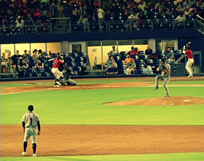 Daz Cameron provided the Friday Fireworks as the big weekend began in Music City. On the field, no one was hotter than right-fielder Daz Cameron who dinged two solo shots out of the park during his first two at bats to help propel the home team to a weather-shortened 6-1 victory over the punchless Indians to begin the much-anticipated three-game set in Hit City. Catcher Jeferson Quero assisted with two runs scored adding to the team's momentum on the 18th that was ultimately derailed by lightning and thunder in the area as the plugged was pulled on the match at the end of the 6th. Despite a truncated night, there was still a lot of smiles at the stadium. As you walk the concourse there is plenty of concession stands, along with a game area and the Sounds' mascot is out and about to say hello to the enthusiastic Sounds fans of all ages.