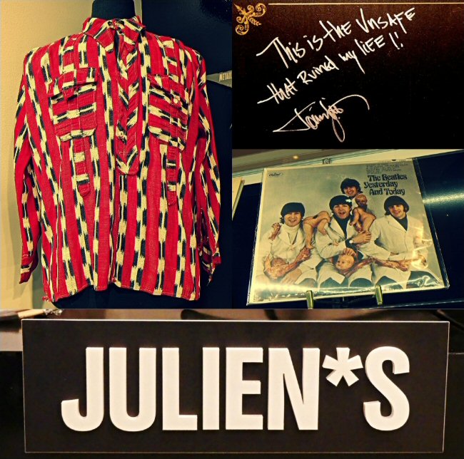 Kirk Hammett is putting a large portion of his legendary 150+ guitar collection up for bidding. As MCN's Rockin' Rich Lynch perused the preview he was drawn to the rare "Yesterday and Today" Butcher record album from the Beatles that currently is registering a bid of $40,000 - made even more interesting by the fact that we met Ringo Starr at the same venue earlier in the year. In addition, RRL spied the custom-made shirt made famous by Tom Petty in the 1982-1983 "You Got Lucky" Music Video, the "Change of Heart" record single cover and many additional magazine covers. Rich was even allowed to ever so gently touch the fabric to feel the slightly rough nature of the stitching on the garment - thus making a new and personal connection with one of his favorite musical artists of all-time. This simple act really proved the value of these types of auctions - they help you get closer to the artists who made history. Even more so if you get lucky enough to become the high bidder!