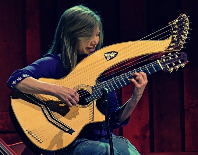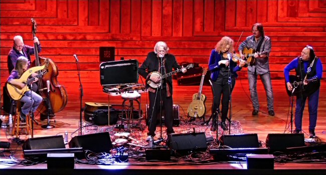 John McEuen with the Circle Band at Harken Hall in Madison. As a founding member of the Nitty Gritty Dirt Band, John has inspired generations of pickers and players, so naturally the evening featured Dirt Band classics, songs from the fabled Will the Circle Be Unbroken album and new music from McEuen himself. Also of note was archival photos and videos compiled by William McEuen who is John's brother, longtime Dirt Band manager and producer of Will the Circle Be Unbroken. The footage added a visual element to this career-spanning concert. The 19th was John's actual birthday and the Hall was decked out for the holidays adding to the festive feel of the evening. The show opened with video clips of artists wishing McEuen a happy birthday. We learned that John went to high school with Steve Martin the comedian who said it was John who taught him how to play the banjo. At one point a photo was shown of the two as youngsters and then again 50 years later. "Musician's musician," declared John Oats describing the lasting influence of McEuen. During the Bash John would play four instruments starting with the banjo. As the show unfolded, he shared snippets of his childhood along with memories of working with the legendary Doc Watson, Earl Scruggs, Maybelle Carter, Roy Acuff and more. After a few solo numbers John's other musical guests joined him. His talented team featured Mike Bub (bass), Justin David (guitar/fiddle), Becky Buller (fiddle), Brandon Lee Adams (guitar), Bill Miller (guitar/vocals), Nathan McEuen (guitar), Muriel Anderson (Harp guitar) and Marilyn McEuen (wife/vocals).