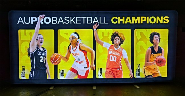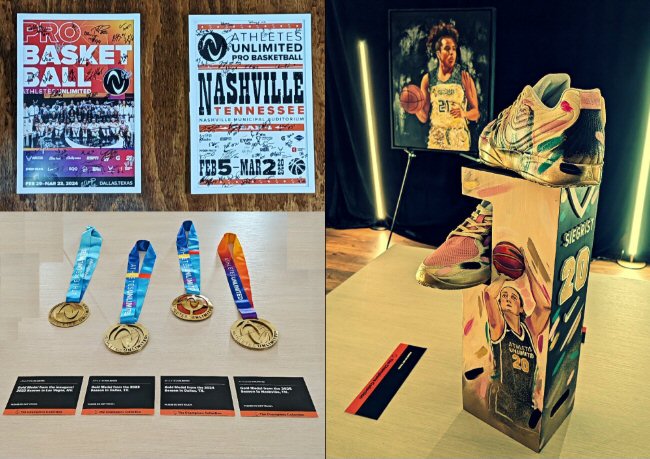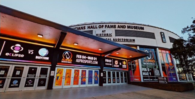 Medals, footwear and the AU Music Series returned in 2026. AU utilizes tech in colorful and informative ways such as the afore mentioned ever changing leaderboard. They also have fan-cams as most leagues do along with fun giveaways. The concourse at the Municipal Auditorium showcased another new element called the "Champion Collection" in which the history and the stars of AU were highlighted. AU has activities along with a team store where fans can purchase items with the new team logos. All this along with two basketball games makes for an engaging evening. AU has crafted an encouraging environment for girls hoping to pursue sports as a career along with providing family friendly entertainment. Another win-win of AU is that the athletes earn bonuses over time and at the end of the year AU matches the bonus amounts to each player's charity of choice. So, please come out and enjoy and support AU!