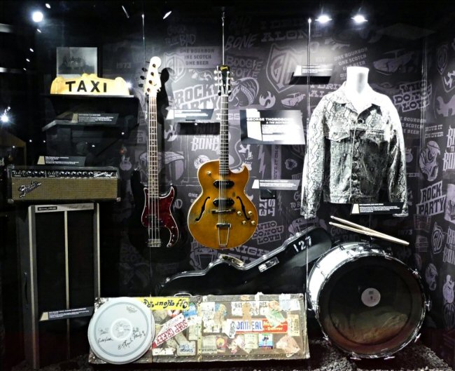 George Thorogood was a tad premature in the ribbon cutting department. "The Destroyers and I are truly honored by this exhibit. This is the gear that's made our music rock for the past 50+ years, and we're excited to share it all with our fans," said Thorogood. "Come See What You've Heard!" "Fifty three years of musicians making music together is a rare and remarkable legacy. That longevity, rooted in deep musicianship and mutual respect, is exactly what the museum is about, and we're excited to share this exhibit with the public," remarked Linda Chambers, Co-Founder and CEO of the Musicians Hall of Fame & Museum. The George Thorogood & The Destroyers exhibit's artifacts include - 1960's Gibson ES-125TDC: "Old Red"; 1974 Shure Vocal Master WA301-S Speaker; 1966 Fender Dual Showman Amplifier Head; 1979 Checker Taxi Roof Sign; Faux Snakeskin Jacket; 1964 Fender Precision Bass Guitar; and a 1976 Slingerland Kick Drum. "One Bourbon, One Scotch, One Beer and one induction into the Musicians Hall of Fame & Museum - does it get any better than this?," MCN reporter Rockin' Rich Lynch asked Thorogood during the Q&A portion of the event.