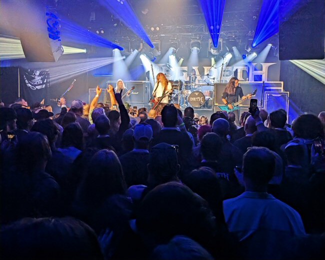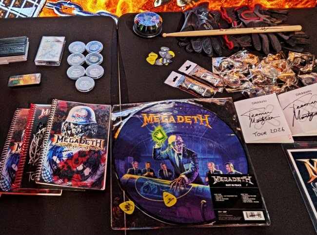 Dave Mustaine; Megadeth merch; and, the incredibly awesome Teemu at NOZ Entertainment in Tennessee. Fans in attendance received admission to the private party, a photo op with the band, light food and beverages and access to a special electric live performance by Megadeth. Each guest also walked away with a limited-edition commemorative #1 album plaque created exclusively for this event. Songs from the new record were sprinkled throughout the set, joined by a handful of Megadeth classics to round out the hour‑and‑ten‑minute performance and award presentation just outside Nashville. "Tipping Point" led the trio of new tracks, followed by the raucous "I Don't Care" and the playful "Let There Be Shred," a tune that imagines a one‑day‑old Mustaine already shredding in his crib mere hours after entering the world. When Dave stepped to the mic early in the night, he told the crowd that the tightly packed audience inside the soundstage reminded him of the small, fervent rooms from Megadeth's early days - the kind of several‑hundred‑strong die‑hard gatherings that first made the band feel like they had truly arrived, long before the thousands they command now, four decades into a legendary career. By all accounts - the band featuring Dave Mustaine, James LoMenzo, Dirk Verbeuren and the newest member on guitar Teemu Mäntysaari were in top form following a two-hour photo and autograph session with attendees. Teemu - the longtime Finnish fan turned integral component of the Thrash titans - was wholly impressive in his recently acquired role. In the press, Mustaine himself has consistently praised the rookie for his preparedness and tone along with a playing style that is a natural fit into Megadeth's well-honed, tight and angular rhythm structures.